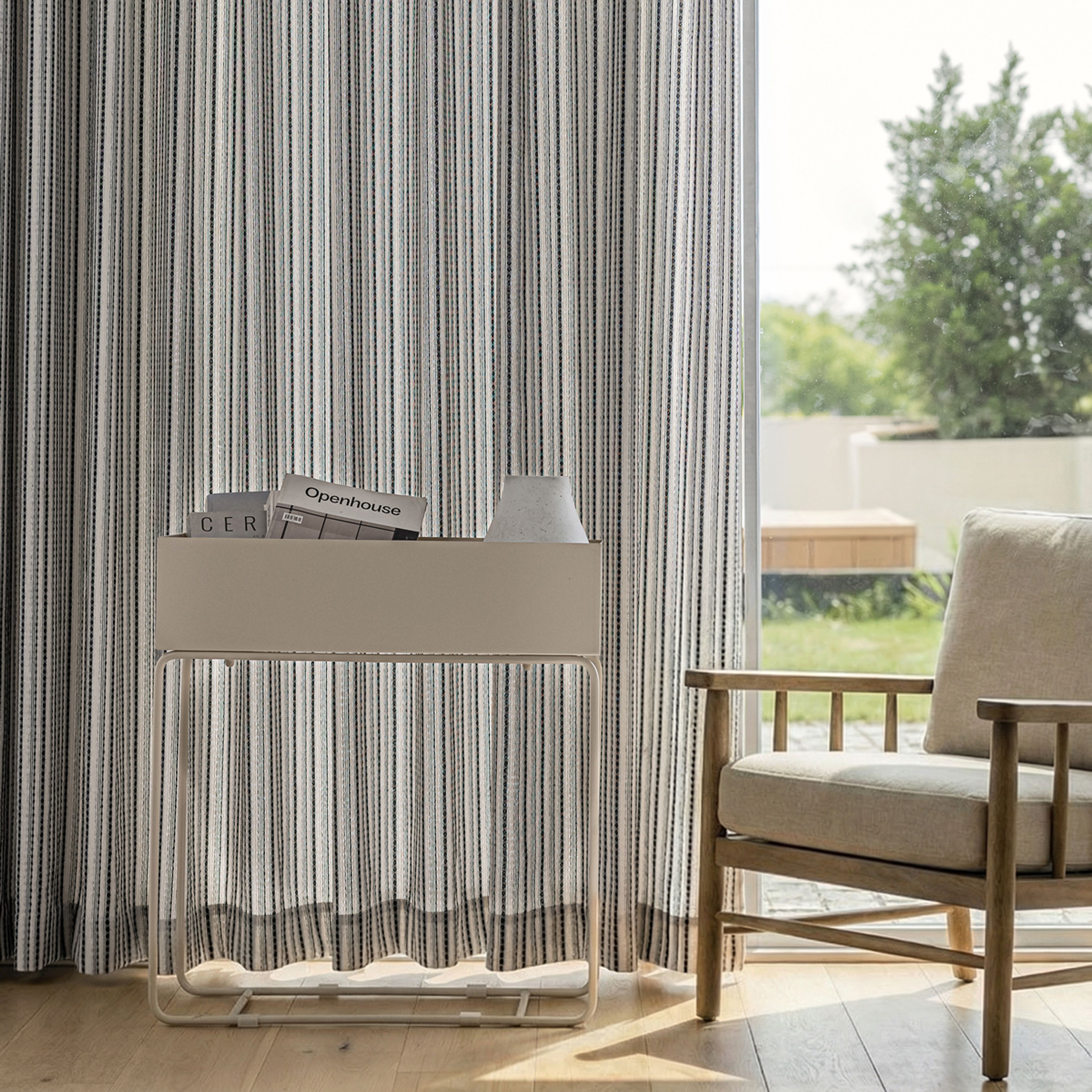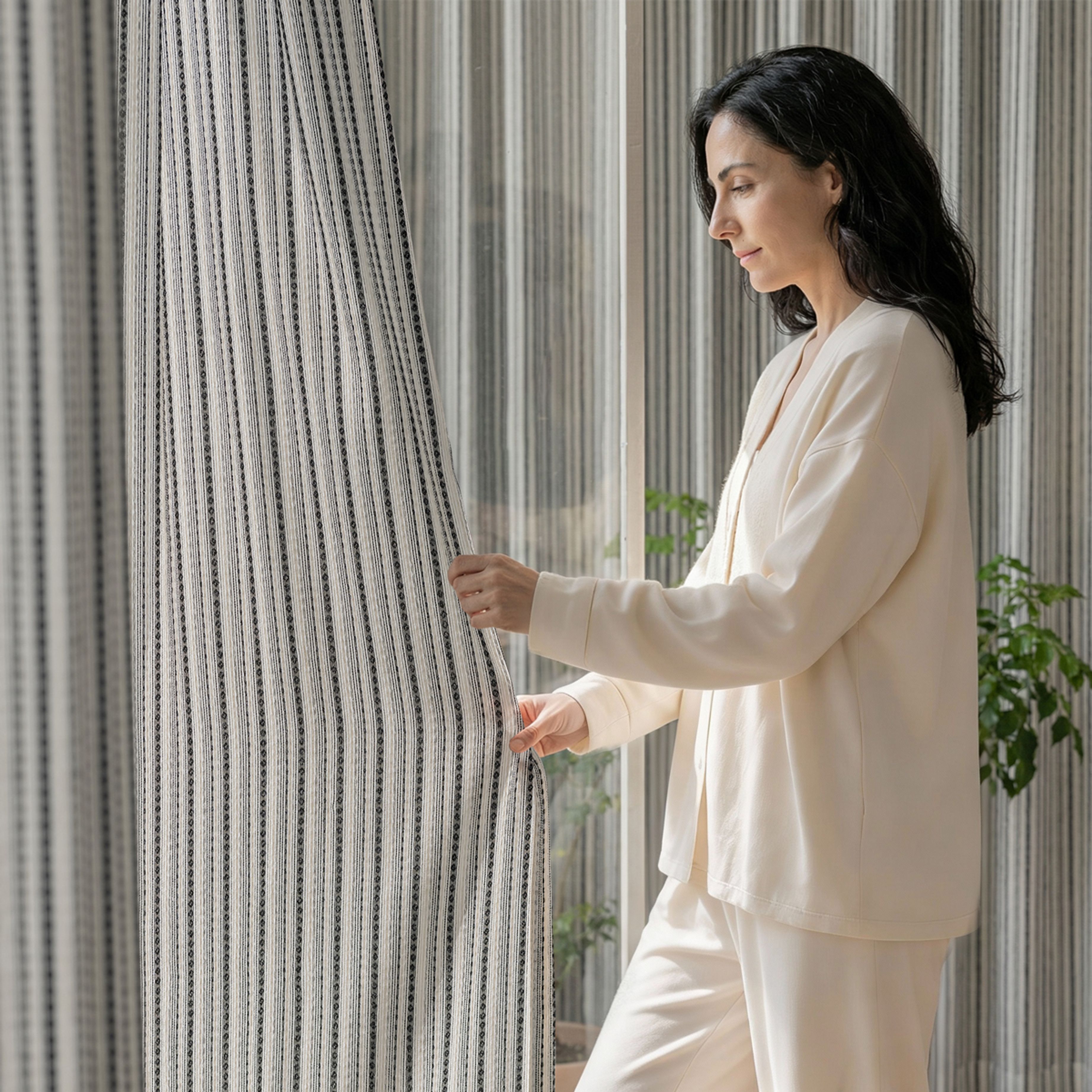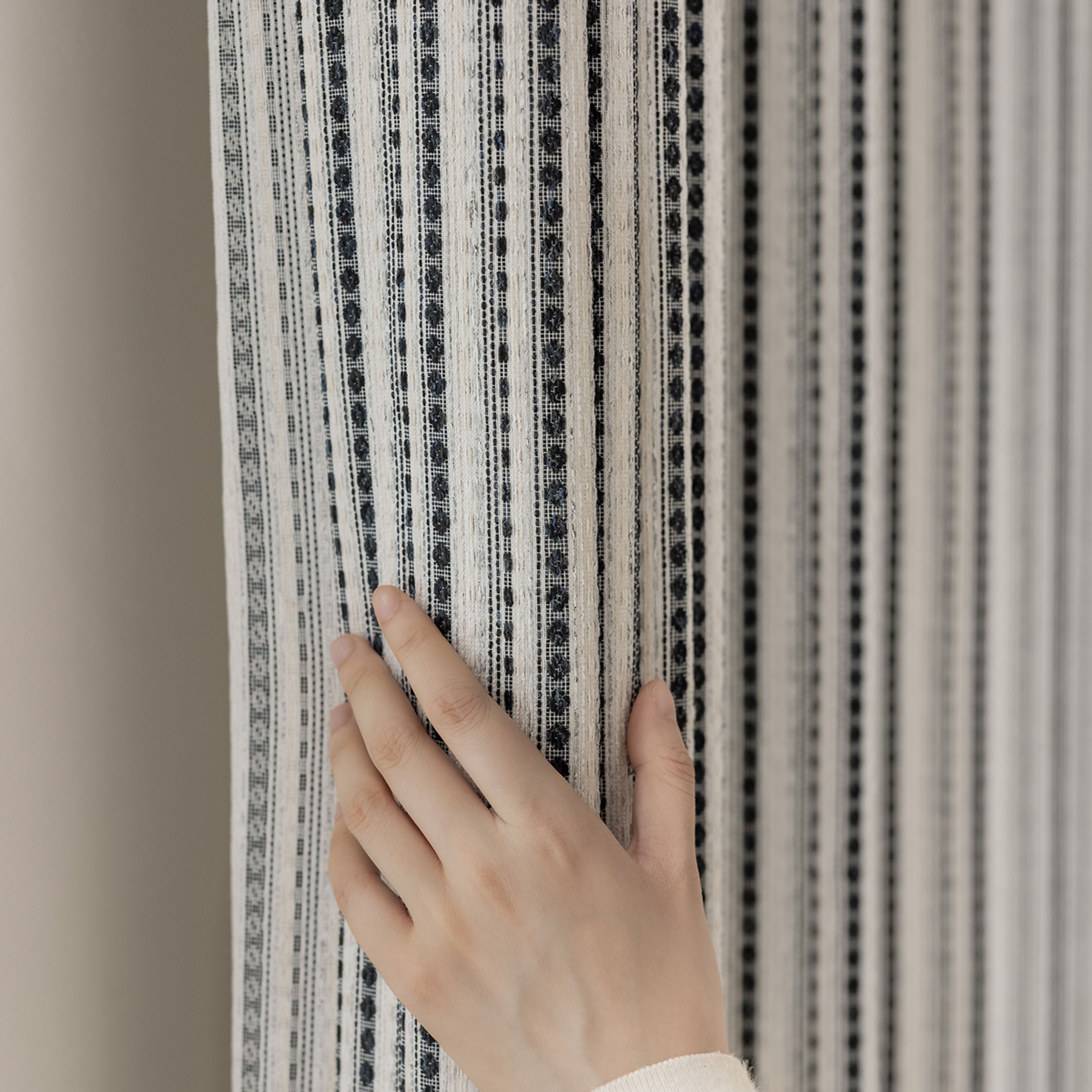 Multi colored threads create subtle stripes and a soft, breathable texture that moves gently with the air.