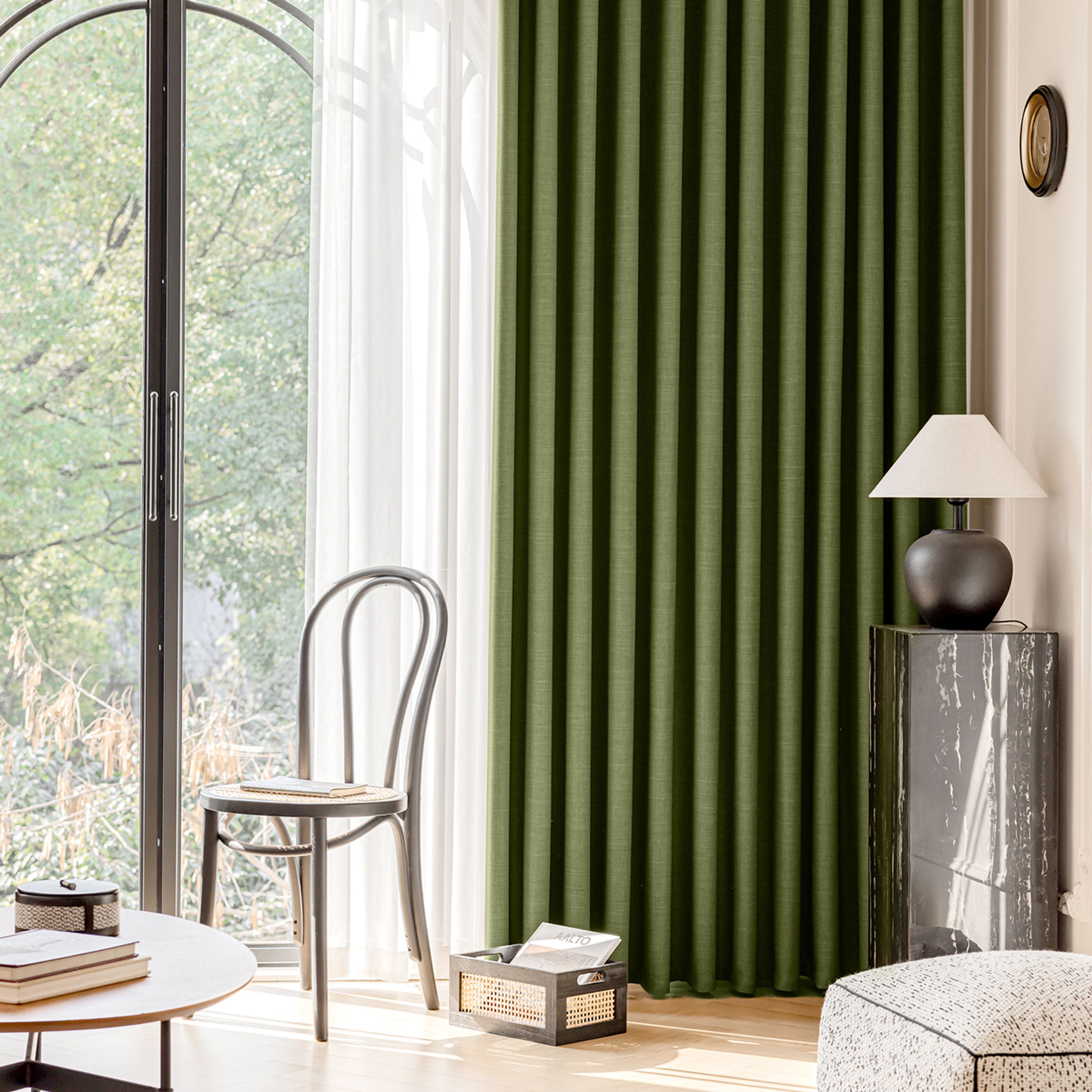 A bold, dimensional weave adds warmth and visual weight to your windows.