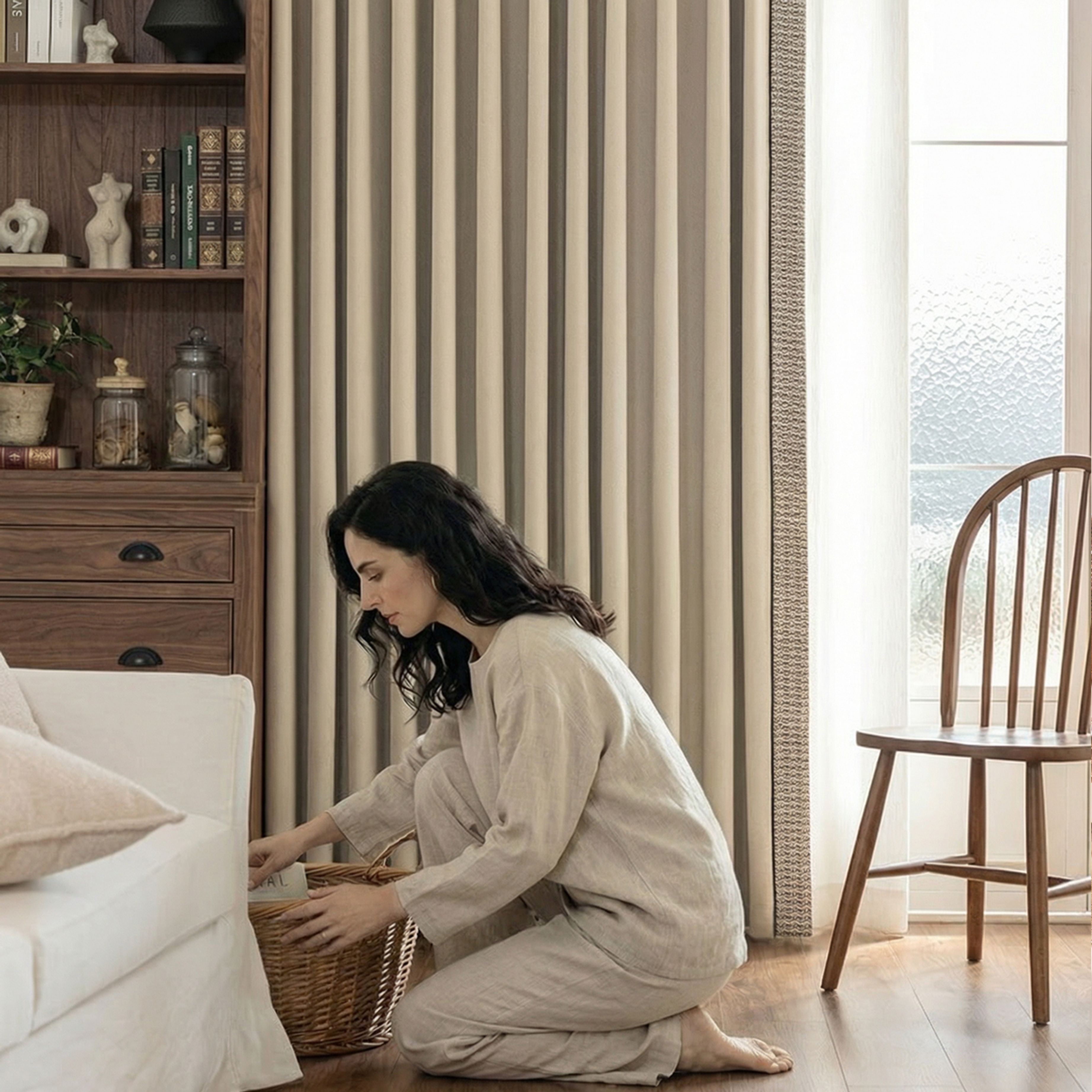 A double-sided, linen-inspired weave that feels soft, breathable, and naturally textured.
